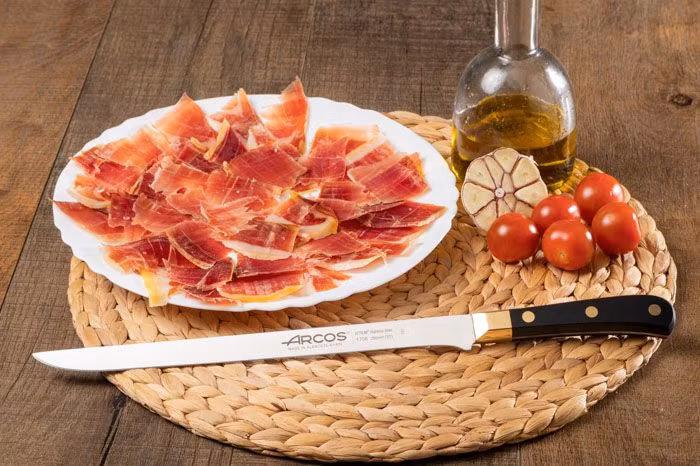 Kniv med långt, tunt, flexibelt blad. Speciellt utformad för att skära skinka och andra stora köttbitar.