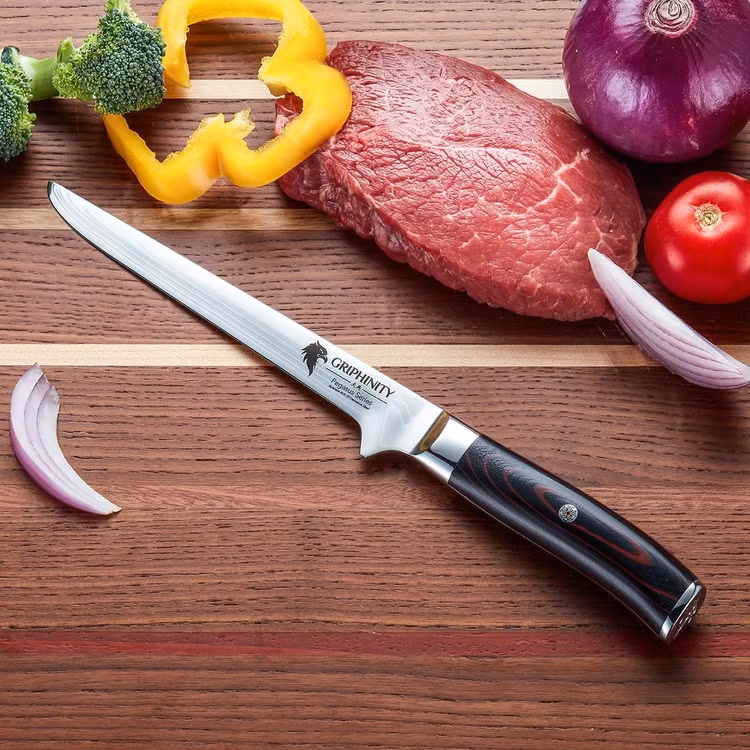 Urbeningskniv i damaskusstål som är perfekt för att bena ur kyckling eller annat kött samt att trimma bort fett och hinnor innan tilbredning.