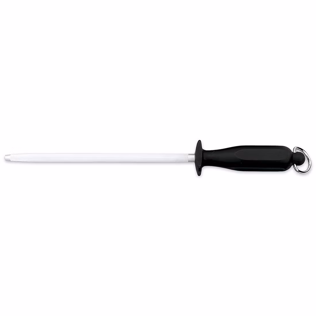 Ett enkelt 23 cm runt slipstål med svart handtag i klassiskt utseende.