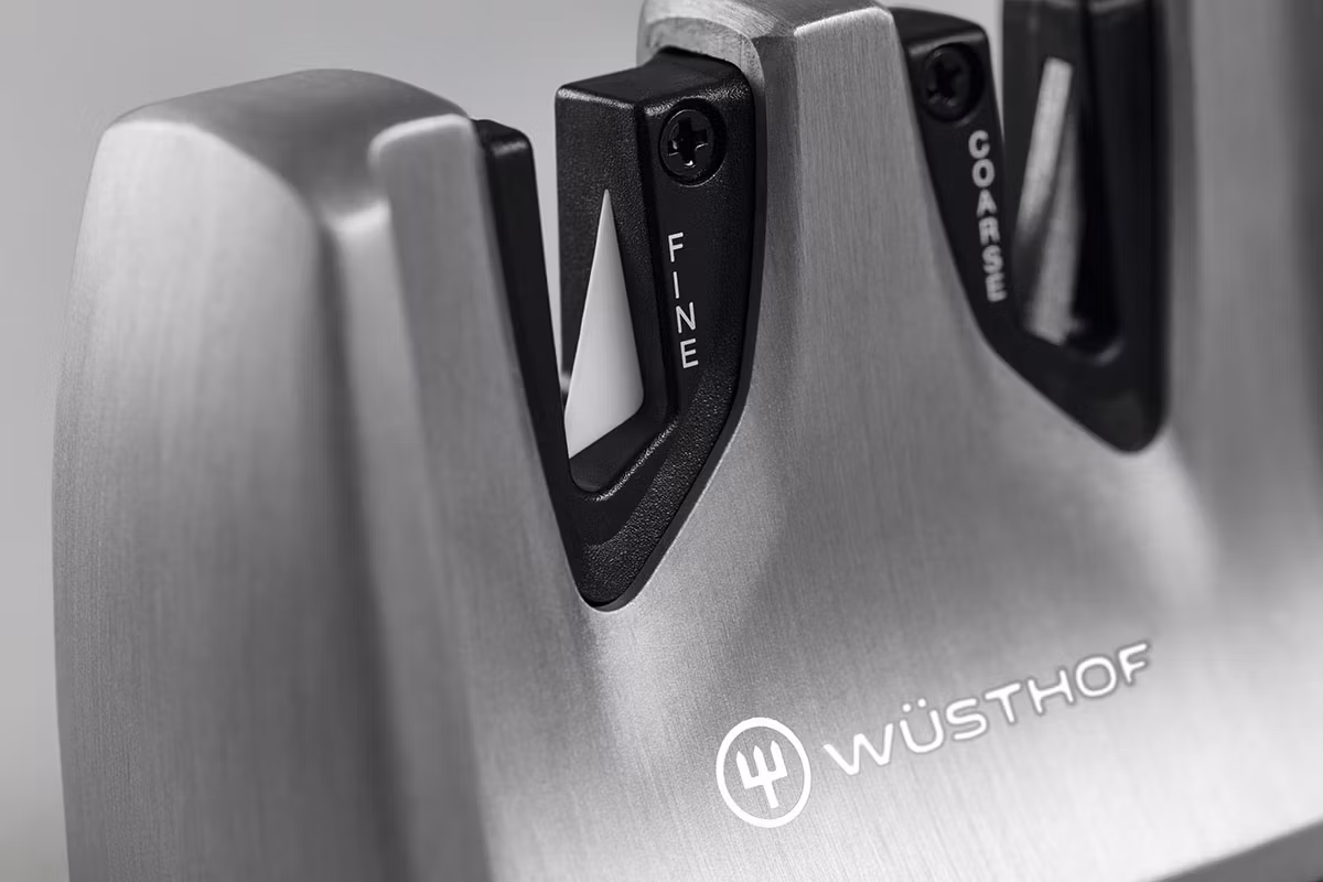 Slipa slöa knivar eller underhålla vassa knivar; allt med samma verktyg! Denna två-stegs knivslip från Wüsthof har ett grovt diamant spår för att slipa slöa knivar, och ett fint keramik spår som används för att bryna och underhålla redan skarpa knivar. Redan inställd på optimal vinkel för europeiska knivar (34 grader); bara dra helt enkelt kniven försiktigt genom varje spår. Kan även användas för att slipa serraterade / tandade knivar. I det här fallet, använd endast det fina spåret.