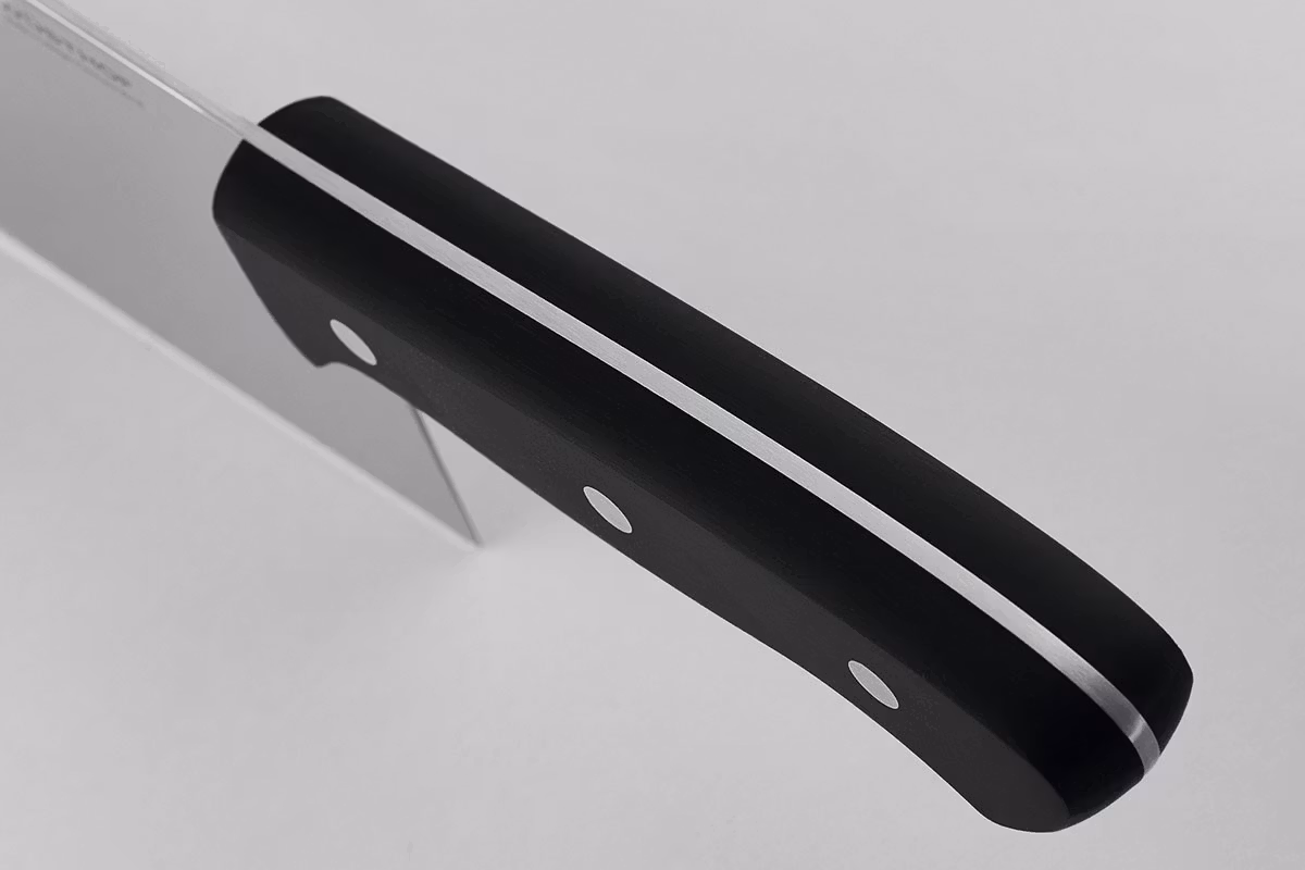 Observera: Detta är inte en köttyxa. Det tunnare bladet är inte avsett för att hugga genom ben eller hårda råvaror som kokosnötter. För sådana uppgifter rekommenderar vi en köttyxa eller slaktarkniv.