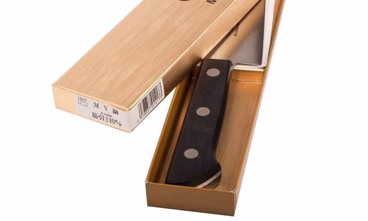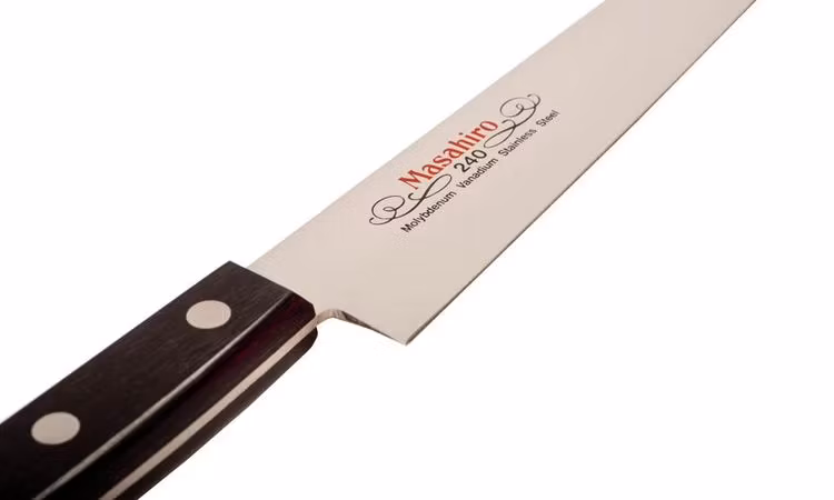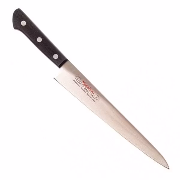 Denna model från Masahiro är tillverkat i Masahiros egna patenterade stål MBS-26. Knivbladet tillverkas genom en komplicerad process i tre faser vilket resulterar i en perfekt hårdhet (HRC 58-59). Varje knivblad slipas till perfektion av hantverkare med mer än 30 års erfarenhet. Skaftet/handtaget är tillverkat av svart pakkaträ som är hygieniskt och anmärkningsvärt hållbart.