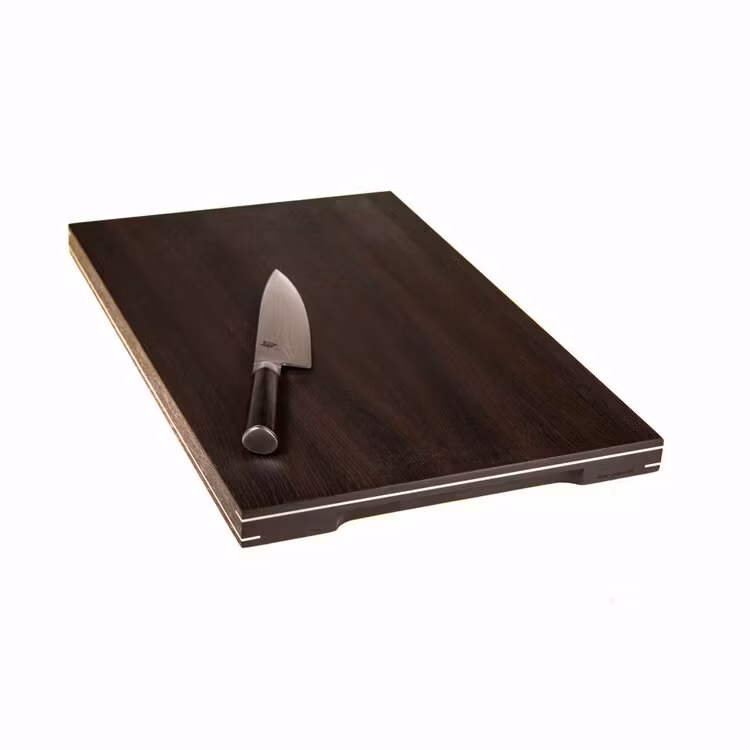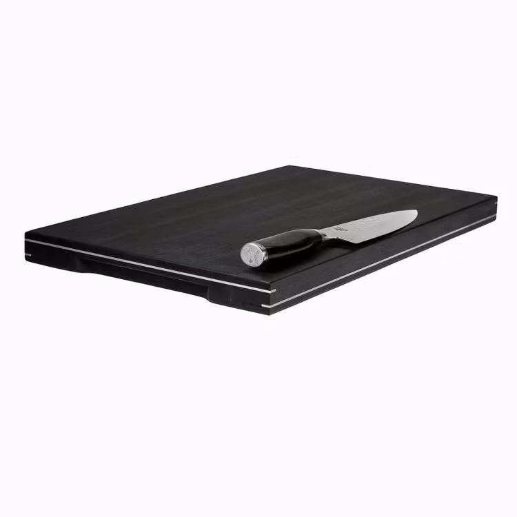 Rune Jacobsen skärbräda JORDAD är en design metallskenors asymmetriska position.