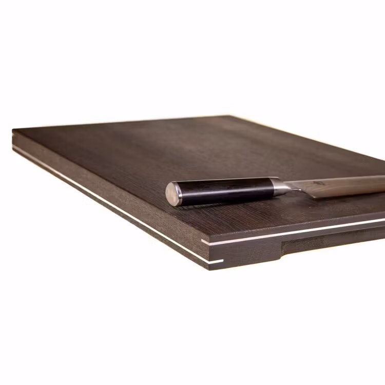 Rune Jacobsen skärbräda JORDAD är en design metallskenors asymmetriska position.