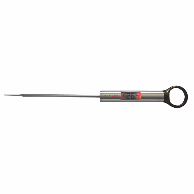 En ny universaltermometer från Satake med både hastighet och precision. Fungerar givetvis både på fisk, kyckling och kött, men en digital universaltermometer kan också vara mycket bra att använda i samband med bakning, eller kanske när ni önskar ha koll på vinets serveringstemperatur. Mäter upp till 250°C på 3 - 4 sek.