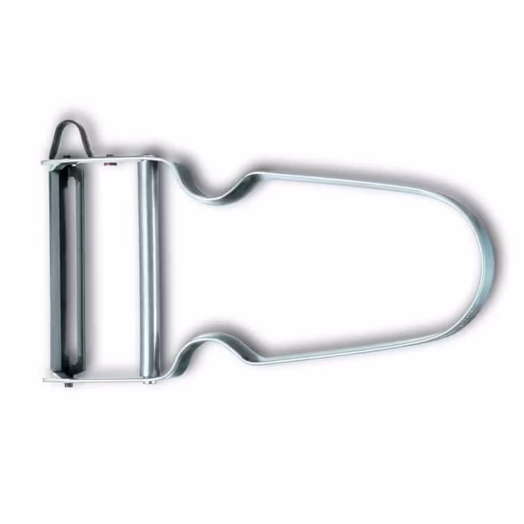 Potatis, grönsaks och rofruktsskalare. Kockensval nummer 1. En av få skalare som klarar sparris bra. Denna modell är helt i rostfritt. Det finns flera väldigt lika skalare som görs i Kina. Men denna är av absolut högsta toppkvalite tillverkad i Europa och med mycket hög skärpa.