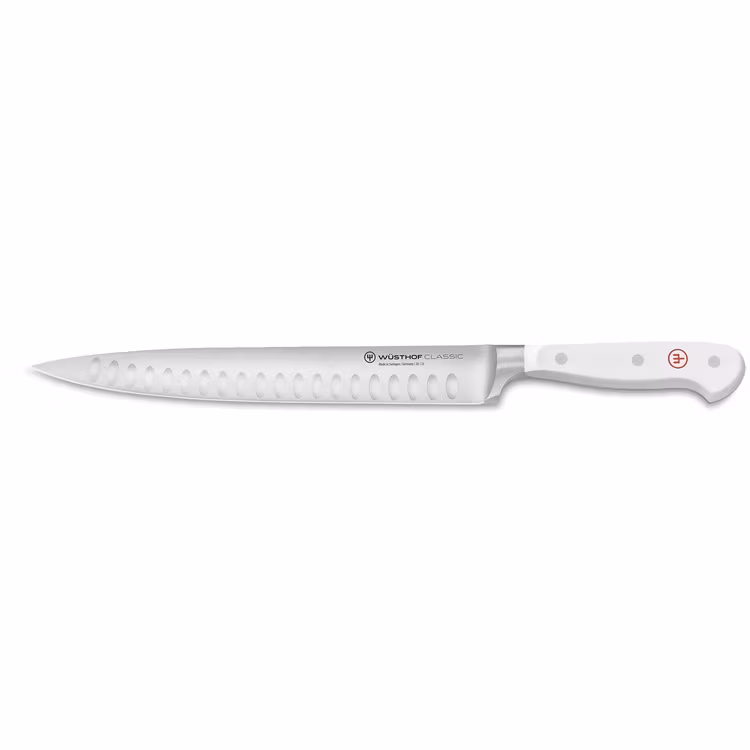 Fin och exakt - med sitt långa smala blad är köttkniven / trancherkniven specialisten för att skära skinka, grillat kött och fisk. Bladet har en såkallad olivslipning, eller culterslipning som det också kallas, som gör att det du skär inte skall fastna på kniven.